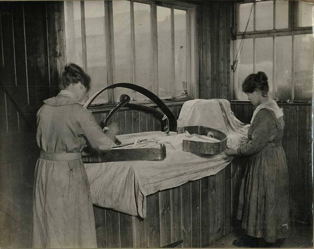| Keywords: ww1 firstworldwar war worlife1915 parsons munitions women female labourers work factory heaton newcastle industrial heritage industrialheritage black and white photograph blackandwhitephotograph digital image digitalimage insulating end connections endconnections 1914 - 18 191418 parsons' works parsonsworks shields road shieldsroad engineer charles parsons charlesparsons inventor steam turbine steamturbine rachel parsons rachelparsons industry ministry of munitions ministryofmunitions women of the war womenofthewar standing dress belt cloth material table timber wood window frame glass wall floor debris shoe mark grain fascinating striking unusual tool metal building roof blur cord lever hook hair black and white These images belong to the Parsons’ ‘Women Labourers’ photograph album, taken at Parsons’ Works on Shields Road during the First World War. (TWAM ref: 2402) The factory was founded by engineer Charles Parsons, best known for his invention of the steam turbine. In 1914, with the outbreak of war, Parsons’ daughter Rachel, one of the first three women to study engineering at Cambridge, replaced her brother on the board of directors, and took on a role in the training department of the Ministry of Munitions, supporting the increasing amount of women taking on jobs in industry to support the war effort. More information about Rachel Parsons and Parsons’ Works can be found in Great North Greats a guest post by David Wright. (copyright) We’re happy for you to share these digital images within the spirit of The Commons. Please cite 'Tyne & Wear Archives & Museums' when reusing. Certain restrictions on high quality reproductions and commercial use of the original physical version apply though; if you're unsure please email archives@twmuseums.org.uk These images belong to the Parsons’ ‘Women Labourers’ photograph album, taken at Parsons’ Works on Shields Road during the First World War. (TWAM ref: 2402) The factory was founded by engineer Charles Parsons, best known for his invention of the steam turbine. In 1914, with the outbreak of war, Parsons’ daughter Rachel, one of the first three women to study engineering at Cambridge, replaced her brother on the board of directors, and took on a role in the training department of the Ministry of Munitions, supporting the increasing amount of women taking on jobs in industry to support the war effort. More information about Rachel Parsons and Parsons’ Works can be found in Great North Greats a guest post by David Wright. (copyright) We’re happy for you to share these digital images within the spirit of The Commons. Please cite 'Tyne & Wear Archives & Museums' when reusing. Certain restrictions on high quality reproductions and commercial use of the original physical version apply though; if you're unsure please email archives@twmuseums.org.uk |