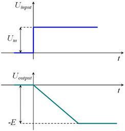 Keywords: Integrator-scheme-2.png Г афика на интег ато п и подаване на нап ежителен скок на входа Опе ационният усилвател се зах анва с еднополя но зах анване -E own 2008-08-28 Spiritia Pulic domain released by the author Waveforms