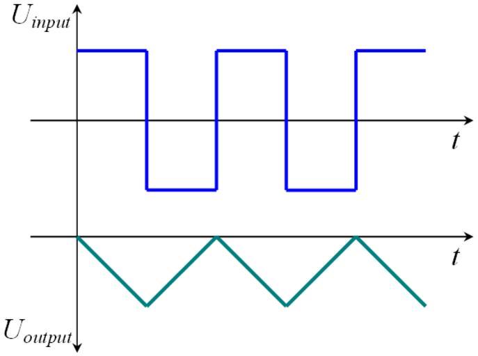 | Keywords: Integrator-scheme-3.png Изходен сигнал на интег ато п и подаване на входен импулсен сигнал Опе ационният усилвател се зах анва с еднополя но зах анване -E own 2008-08-28 Spiritia Pulic domain released by the author Waveforms Transverse wave |