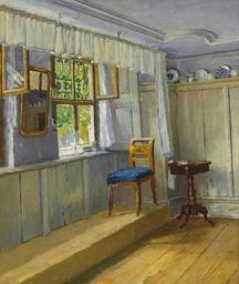 | Keywords: Interieur mit Holztäferung c1900.jpg Interieur mit Holztäferung blauem Geschirr und Blick durch geöffnetes Fenster in den Garten oil on canvas 45 x 39 5 cm zeller de ca 1900 anonymous PD-art Living rooms in art Images from Auktionshaus Zeller 1900s interiors in art |