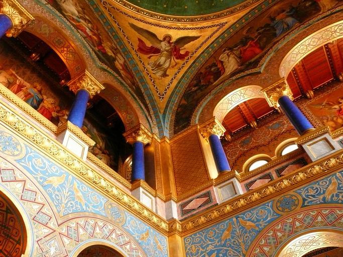 Keywords: interior castle neuschwanstein bavaria germany arcade fresco artful ceiling archway architecture golden historical building king ludwig the second allgäu luxury fantastically