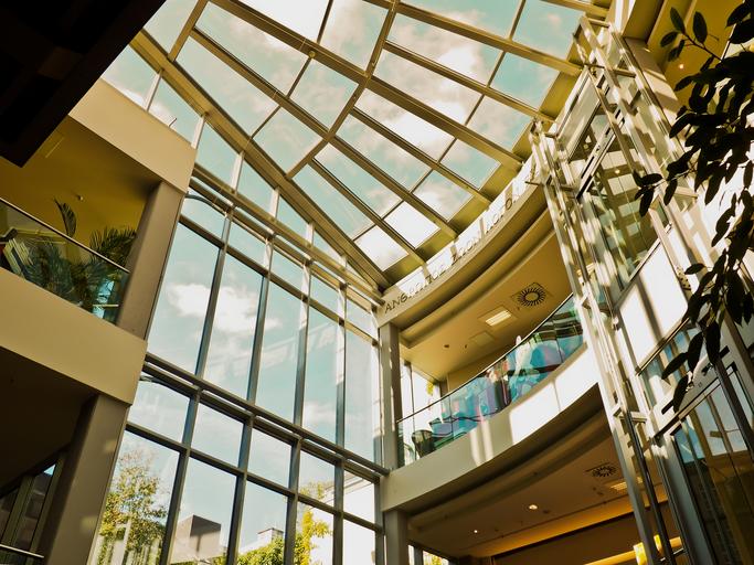 Keywords: interior design architecture inside düsseldorf building glass roof modern low angle shot