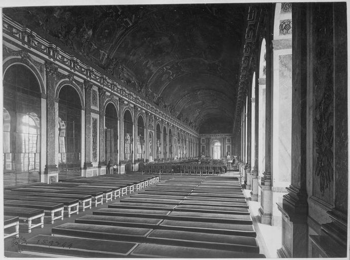 | Keywords: Interior of the Galerie des Glaces showing the arrangement of tables for the signing of Peace Terms, Versailles... - NARA - 531149.tif Local identifier 111-SC-159294 Department of Defense Department of the Army Office of the Chief Signal Officer 09/18/1947 - 02/28/1964 Still Picture Records Section Special Media Archives Services Division NWCS-S National Archives at College Park 8601 Adelphi Road College Park MD 20740-6001 1919-06-27 Record group Record Group 111 Records of the Office of the Chief Signal Officer 1860 - 1985 Record group ARC 440 Signal Corps Photographs of American Military Activity compiled 1754 - 1954 Series ARC 530707 Variant control numbers NAIL Control Number NWDNS-111-SC-159294 General notes Use War and Conflict Number 723 when ordering a reproduction or requesting information about this image Scope and content File unit File unit ARC yes NARA-cooperation PD-USGov Treaty of Versailles Hall of Mirrors Palace of Versailles |
