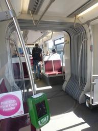| Keywords: Interior of one of the TTC's new prototype Flexity Outlook streetcars, at the Russell Carhouse, 2014 05 24 (11).jpg Interior of one of the TTC's new prototype Flexity Outlook streetcars at the Russell Carhouse 2014 05 24 11 <br/> I visited the Russell Carhouse during Doors Open Toronto 2014 and took photos of two legacy streetcars the TTC's last Peter Witt streetcar and PCC streetcar 4959 and one of the TTC's two prototype Toronto Flexity Outlook streetcars http //www flickr com/photos/55289779 N00/14076201898/ Interior of one of the TTC's new prototype Flexity Outlook streetcars at the Russell Carhouse 2014 05 24 11 2014-05-24 15 19 http //www flickr com/people/55289779 N00 booledozer 43 664097 -79 322178 source Flickr PermissionOTRS 2012092210003274 Revent Taken with Panasonic Lumix DMC-ZS10 Photographs by Geo Swan Bombardier LRV in Toronto during Door Open 2014 Presto cards on the TTC Fare collection on the TTC's Bombardier light rail vehicles ImageNote 1 894 3060 782 1142 3240 4320 2 The new Flexity vehicles have seven segments four of which have doors The central two doors have a vending robot that accepts cash Riders are expected to use the machine to purchase their fares on the honor system All the doors have a Presto card reader where riders tap their card on entry GO Transit riders use the same Presto card and on most vehicles are supposed to tap their card on exit as well ImageNoteEnd 1 |