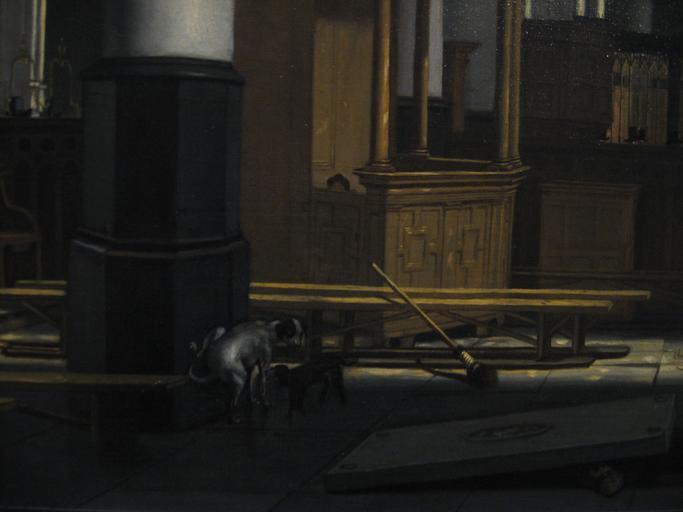 Keywords: Interior of Oude Kerk Amsterdam detail by de Witte 1660.JPG Artwork Creator Emanuel de Witte The Interior of Oude Kerk Amsterdam <br> 1660/1665 Oil on canvas Institution National Gallery of Art object history credit line accession number Photograph of original artwork National Gallery of Art Washington DC United States PD-old-100 Paintings by Emanuel de Witte Paintings of churches Dutch Golden Age paintings in the National Gallery of Art 1660s oil on canvas paintings in the United States 17th-century paintings of dogs Paintings of church interiors |