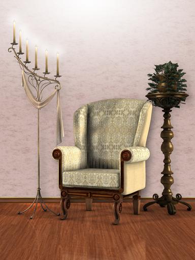 Keywords: interior room render chair armchair vintage light candle candlestick plant wood floor furniture living decor