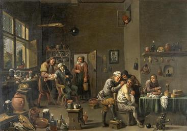 | Keywords: Interior of a surgery with two operators, one letting blood Wellcome V0017414.jpg Artwork Interior of a surgery with two operators one letting blood from a man's arm the other giving treatment to a man's back Oil painting by a follower of David Teniers the younger <p>Iconographic Collections<br> Keywords iconographic collections; David Teniers; surgery blood letting; teniers david 1610-1690 Library reference ICV No 17760 Photo number V0017414 Full Bibliographic Record http //catalogue wellcomelibrary org/record b1202678 object history exhibition history credit line Wellcome Images 300px300px300px http //wellcomeimages org/indexplus/obf_images/c0/ff/4882f6f131eea77331dac504ffc8 jpg Gallery http //wellcomeimages org/indexplus/image/V0017414 html accession number PD-old-auto-1923 1690 Images uploaded by Fæ Wellcome V0017414 jpg Files from Wellcome Images check needed V0017414 jpg Works after David Teniers the Younger Wellcome Library oil paintings Surgery in the Wellcome Collection |