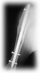 Keywords: Interlocking Nail Xray Innovative Animal Products.jpg en This is an image of the Innovative Animal Interlocking Nail in a canine femur own Sunstriae Sunstriae Veterinary radiology