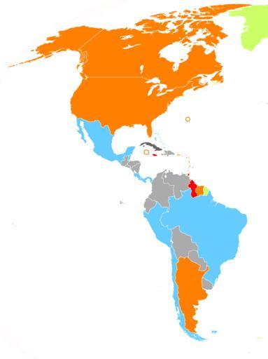 | Keywords: International Cricket Council members – Americas.png en Members of the w International Cricket Council located in the Americas as follows Red full members<br> Orange associate members<br> Blue affiliate members<br> Green dependent territories of members on other continents not ICC members in their own right <br> Faded orange dependent territories of members in the Americas not ICC members in their own right <br> Dark grey former members<br> Grey non-members own IgnorantArmies 2014-07-21 Sport maps of the Americas International Cricket Council Cc-zero |