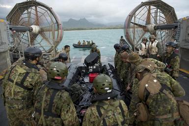| Keywords: International partners participate in Amphibious Assault Exercise during RIMPAC 2014 140727-N-WX378-051.jpg en Members of the Japan Ground Self Defense Force Princess Patricia's Canadian Light Infantry Recon Platoon and the U S Marine 3rd Reconnaissance Battalion A Company Third Platoon unload a combat rubber raiding craft off a landing craft air cushion assigned to Assault Craft Unit ACU 5 as part of a training exercise during Rim of the Pacific RIMPAC Exercise 2014 Twenty-two nations 49 ships and six submarines more than 200 aircraft and 25 000 personnel are participating in RIMPAC from June 26 to Aug 1 in and around the Hawaiian Islands and Southern California The world's largest international maritime exercise RIMPAC provides a unique training opportunity that helps participants foster and sustain the cooperative relationships that are critical to ensuring the safety of sea lanes and security on the world's oceans RIMPAC 2014 is the 24th exercise in the series that began in 1971 U S Navy photo by Mass Communication Specialist 2nd Class Bryan M Ilyankoff/Released 2014-07-27 Petty Officer 2nd Class Bryan Ilyankoff https //www dvidshub net/image/1474143 140727-N-WX378-051 2014-07-31 14 26 MARINE CORPS TRAINING AREA BELLOWS HI US PD-USGov-Military-Navy Marine Corps Training Area Bellows RIMPAC 2014 Images from DoD uploaded by Fæ Princess Patricia's Canadian Light Infantry |