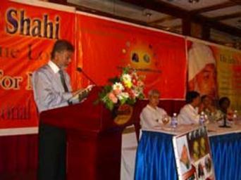 Keywords: International Symposium (4).jpg en Patron-in-Chief Mir L Ali speaks to the audience own or Kalki Avatar Foundation International Mfi media Gohar Shahi Symposia