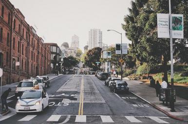 | Keywords: street road intersection urban city crosswalk outdoor taxi cab automobile pedestrian advertisement streetlamp public domain publicdomain sidewalk License: Public Domain Dedication (CC0) Source: Unsplash License: Public Domain Dedication (CC0) Source: Unsplash |