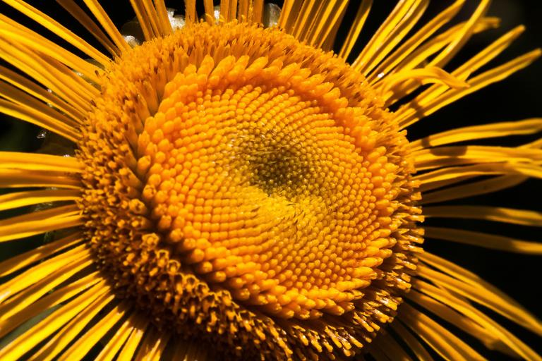 Keywords: inula flower yellow composites flower basket tongue blooms tubular blooms summer macro nature plant flower garden