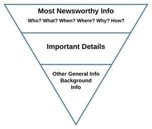 | Keywords: Inverted pyramid.svg The Inverted pyramid technique of journalism writing Inverted_pyramid jpg 2011-01-24 09 00 UTC Inverted_pyramid jpg The Air Force Departmental Publishing Office AFDPO derivative work Makeemlighter Vector text versions Inverted pyramid 2 svg ; Translations Arabic Korean Redrawn as SVG Makeemlighter Inverted_pyramid jpg Original upload log This image is a derivative work of the following images File Inverted_pyramid jpg licensed with PD-USGov-Military-Air Force 2011-01-23T21 26 05Z P S Burton 718x569 31907 Bytes <nowiki> http //www shaw af mil/library/editorialpolicy submissions/newsarticles asp US Air Force Shawn Air Force Base 20th FW Editorial Policy Submission Guidelines Not given T</nowiki> Uploaded with derivativeFX Journalism |
