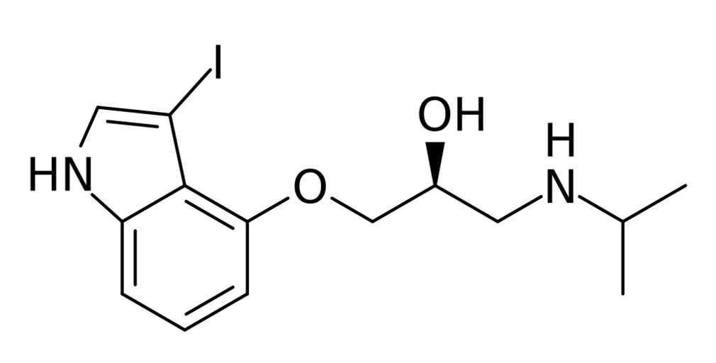 Keywords: Iodopindolol.svg Chemical structure of iodopindolol Own 02 22 28 January 2016 UTC Ed Edgar181 200px Beta blockers Organoiodides Indoles