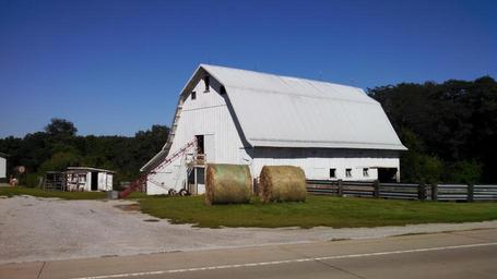 Keywords: iowa barn white blue farm rural farmland agriculture scenic scenery midwest rustic farming landscape barns buildings