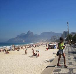 Keywords: ipanema-beach rio twin mountains dois irmaos brazil nature blue rock second largest city in brazil sunny rio de janeiro holiday samba city world famous beach ipanema people on the beach mountains distinctive