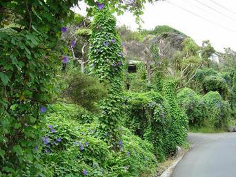 Keywords: Ipomoea indica, Piha, New Zealand.JPG en Blue morning glory Ipomoea indica on the main road to Piha in New Zealand own Alan Liefting 2005-02-16 Piha Ipomoea indica Invasive plant species in New Zealand Files by Alan Liefting