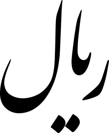 Keywords: Iranian Rial.svg Rial written on Nastaliq style From 100 thousand rial banknote but recreated using IranNastaliq font 7/9/2015 own PD-simple File Rialsymbol svg Nastaliq Rial sign