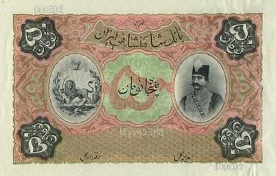 | Keywords: IranP7s-50tomans-ND-donatedjs f.jpg en Banknote of Persia - 50 tomans; before 1911 bg Банкнота от Пе сия п еди 1911 г 50 пе сидски тумана 50 пе сидских туманов 1911 Аве с Об азец Импе скиа Банка на Пе сия Импе ский Банк Пе сии банкноти до 1911 http //www banknoteworld com/notedir/mappage html PD-old-100 PD-Iran 1911 banknotes Banknotes of Iran Qajar era Lions in heraldry 50 Toman 500 Rial banknotes Lion and Sun | ||||