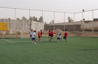 | Keywords: Iraqi Police win 4-3 in soccer against Soldiers DVIDS25294.jpg en On 4 July 06 the Coalition Forces Strykers decided to have a match of soccer against the Iraqi police of Nineveh Province the IP's win the victory 4-3 in Forward Operating Base Marez Mosul Iraq Photo by Spc Yolanda Moreno Leon 138th MPAD 2006-07-04 Spc Yolanda Moreno Leon https //www dvidshub net/image/25294 25294 2006-07-08 02 50 MOSUL IQ PD-USGov Forward Operating Base Marez Images from DoD uploaded by Fæ | ||||
