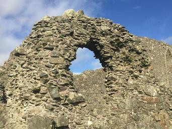 Keywords: ireland stones stone arch ruin stacked window hole sky