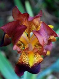 Keywords: iris flower bloom petals purple pink yellow furry delicate intricate spring garden