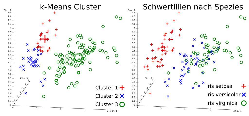 | Keywords: Iris Flowers Clustering kMeans de.svg Iris flower data set clustered using k means left and true species in the data set right Note that k-means is non-determinicstic so results vary Cluster means are visualized using larger semi-transparent markers The visualization was generated using ELKI Iris flower data set mit dem k-Means-Algorithmus analysiert links und die wahren Spezien im Datensatz rechts Da k-means nicht deterministisch ist variieren die Ergebnisse Die Clusterzentren sind durch größere halbtransparente Markierungen eingezeichnet Visualisiert mit ELKI И исы Фише а класте изованные с помощью метода k-с едних слева и настоящие виды набо ов данных сп ава етод k-с едних не является дете мини ованным поэтому езультаты отличаются Цент ы класте ов отмечены с помощью к упных полуп оз ачных ма ке ов Визуализация была получена с помощью ELKI own Chire Other versions Iris_Flowers_Clustering_kMeans svg Iris_Flowers_Clustering_kMeans_ru svg Other fields ELKI + Cc-zero K-means algorithm Cluster analysis Machine learning |