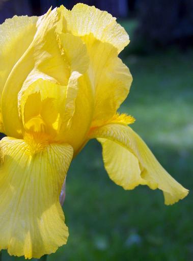 Keywords: iris yellow flowers petals blooming blooms delicate blossom green background flowering plant ornamental decorative fleurs bright sunlight shadows shades