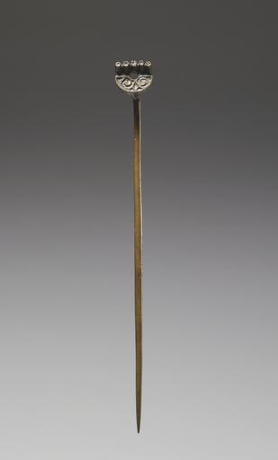 | Keywords: Irish Celtic - Hand-Pin - Walters 542370.jpg Called a hand-pin because it resembles the palm of the hand with the fingers pointing out at right angles this pin served as a cloak fastener Hand-pins were fashionable in Ireland and Scotland in the 6th and 7th centuries Originally the five pellet fingertips along the top of the pin and the sunken background of the spiraling design on its crescent-shaped palm were filled with colorful enamel A tie once passed through the hole in the center of the palm and was wrapped around the tip of the pin to keep it securely in place The shape of the pin is a creative adaptation of a Romano-British brooch design dating from the 4th century century 6 7 Early Medieval bronze cm 22 2 2 1 9 accession number 54 2370 30021 Robert Day Cork Robert Day Sale Sotheby Wilkinson Hodge London May 19-22 1913 no 357 Patrick O' Connor New York Walters Art Museum 1950 by purchase Museum purchase with funds provided by the S A P Fund 1950 Jewelry - Ancient to Modern The Walters Art Gallery Baltimore 1979-1980 place of origin Burgundy France Walters Art Museum license Medieval metalwork in the Walters Art Museum Celtic jewellery Jewellery in the Walters Art Museum Celtic art |