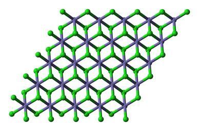 | Keywords: Iron(II)-chloride-xtal-sheet-3D-balls-A.png Ball-and-stick model of part of an FeCl<sub>2</sub> <sub> ˆž</sub> sheet in the crystal structure of iron II chloride FeCl<sub>2</sub> X-ray crystallographic data from http //rruff geo arizona edu/AMS/download php id 10773 cif down text AMCSD originally from <small>R W G Wyckoff Crystal Structures 1 1963 Second edition Interscience Publishers New York 239-444 </small> Own 2009-03-05 Ben Mills Benjah-bmm27 Images by Ben Mills Crystal structure of iron II chloride |