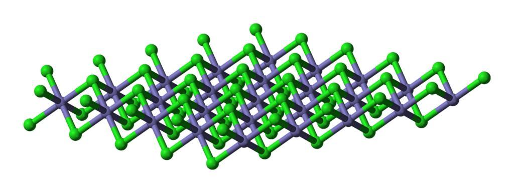| Keywords: Iron(II)-chloride-xtal-sheet-3D-balls-B.png Ball-and-stick model of part of an FeCl<sub>2</sub> <sub> ˆž</sub> sheet in the crystal structure of iron II chloride FeCl<sub>2</sub> X-ray crystallographic data from http //rruff geo arizona edu/AMS/download php id 10773 cif down text AMCSD originally from <small>R W G Wyckoff Crystal Structures 1 1963 Second edition Interscience Publishers New York 239-444 </small> Own 2009-03-05 Ben Mills Benjah-bmm27 Images by Ben Mills Crystal structure of iron II chloride |