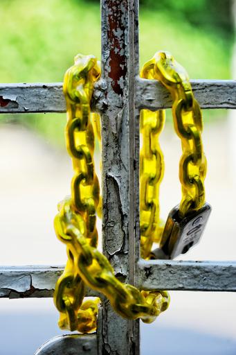 Keywords: iron rust texture paint chain padlock gate yellow closed