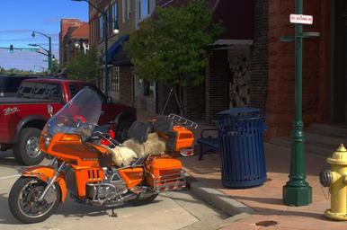 Keywords: irony graphic design portals exterior detail elkhart indiana color orange green red blue yellow vivid dramatic vibrant colorful