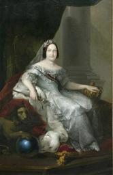 | Keywords: Isabel II, de José Gutiérrez de la Vega (Universidad de Sevilla).jpg La reina Isabel II aparece retratada con aspecto juvenile cubierta por un manto de armiño y sentada en un trono En su mano derecha lleva un cetro y su mano izquierda está apoyada sobre una corona c 1840 oil canvas Size cm 124 194 Universidad de Sevilla http //www patrimonioartistico us es/objeto jsp id 720 tipo v elto 3 buscando true repetir true object history exhibition history credit line accession number 0718-00-REC-PINT http //www patrimonioartistico us es/objeto jsp id 720 tipo v elto 3 buscando true repetir true PD-old-100 Isabella II of Spain in portraits Painted portraits of kings of Spain in the University of Seville José Gutiérrez de la Vega Uploaded with UploadWizard |
