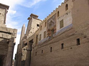 Keywords: ISAbu Haggag Moské.JPG 2006-12-25 own assumed Cirodite Courtyard of Ramses II in Luxor Temple Abu Haggag Mosque