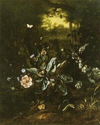 | View Original: | Isac_Vromans_-_Stil_life_with_snake_eating_newly_hatched_bird_out_of_a_nest_among_flowers_in_a_forest_floor_with_a_frog,_mouse_and_insects_1703.jpg (644x800) | |||