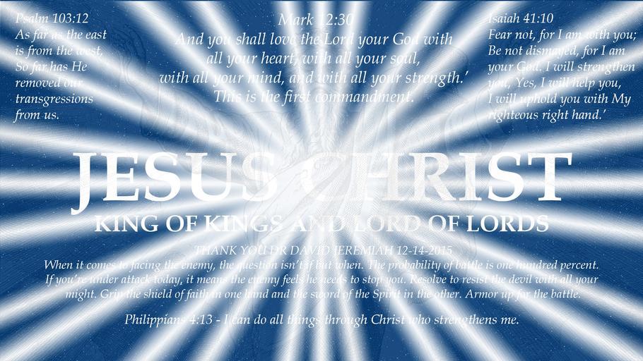 | Keywords: god jesus jesus christ jesuschrist god the father godthefather holy spirit holyspirit holy church scripture angels faith prayer pray hope peace love alive forevermore aliveforevermore angel christian righteous king of kings kingofkings heaven archangel god is love godislove prince of peace princeofpeace creator christ the creator christthecreator god the creator godthecreator third heaven thirdheaven awesome alpha and omega alphaandomega wonderful glorious omnipotent almighty bible holy bible holybible armor of god armorofgod glorify hallelujah judgment judgment day judgmentday usa united states of america unitedstatesofamerica sleep christ who strengthens me christwhostrengthensme word of god wordofgod word of god stands forever wordofgodstandsforever shine like stars shinelikestars the lord is my shepherd thelordismyshepherd eternity confess christ confesschrist confess repent repentance humble sinner humble yourself humbleyourself saved lost found salvation praise god praisegod amen word became flesh wordbecameflesh be strong bestrong courage spiritual warfare monochrome depth of field macro pattern texture pastel abstract outdoor Isaiah 41:10 New King James Version (NKJV) Fear not, for I am with you; Be not dismayed, for I am your God. I will strengthen you, Yes, I will help you, I will uphold you with My righteous right hand.’ Psalm 103:12 New King James Version (NKJV) As far as the east is from the west, So far has He removed our transgressions from us. Mark 12:30 New King James Version (NKJV) And you shall love the Lord your God with all your heart, with all your soul, with all your mind, and with all your strength.’ This is the first commandment. Philippians 4:13 New King James Version (NKJV) I can do all things through Christ who strengthens me. THANK YOU DR DAVID JEREMIAH 12-14-2015 www.davidjeremiah.org/site/default.aspx When it comes to facing the enemy, the question isn’t if but when. The probability of battle is one hundred percent. If you’re under attack today, it means the enemy feels he needs to stop you. Resolve to resist the devil with all your might. Grip the shield of faith in one hand and the sword of the Spirit in the other. Armor up for the battle. God: Creation of Light background created in 1860 by Julius Schnorr von Carolsfeld. Public Domain. en.wikipedia.org/wiki/Julius_Schnorr_von_Carolsfeld www.flickr.com/photos/hsga/21146492723/in/dateposted-public/ Isaiah 41:10 New King James Version (NKJV) Fear not, for I am with you; Be not dismayed, for I am your God. I will strengthen you, Yes, I will help you, I will uphold you with My righteous right hand.’ Psalm 103:12 New King James Version (NKJV) As far as the east is from the west, So far has He removed our transgressions from us. Mark 12:30 New King James Version (NKJV) And you shall love the Lord your God with all your heart, with all your soul, with all your mind, and with all your strength.’ This is the first commandment. Philippians 4:13 New King James Version (NKJV) I can do all things through Christ who strengthens me. THANK YOU DR DAVID JEREMIAH 12-14-2015 www.davidjeremiah.org/site/default.aspx When it comes to facing the enemy, the question isn’t if but when. The probability of battle is one hundred percent. If you’re under attack today, it means the enemy feels he needs to stop you. Resolve to resist the devil with all your might. Grip the shield of faith in one hand and the sword of the Spirit in the other. Armor up for the battle. God: Creation of Light background created in 1860 by Julius Schnorr von Carolsfeld. Public Domain. en.wikipedia.org/wiki/Julius_Schnorr_von_Carolsfeld www.flickr.com/photos/hsga/21146492723/in/dateposted-public/ |