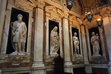 | Keywords: Isaiah, St. Elizabeth, and Eve by Matteo Cividali, second half of the 15th century, and Madonna by Andrea Sansovino, early 1500s, marble - San Lorenzo (Genoa) - DSC01924.JPG en work in the Cathedral San Lorenzo Genoa Italy This artwork is old enough so that it is in the public domain Photography was permitted in the cathedral without restriction 2013-09-25 10 53 35 own Daderot cc-zero Uploaded with UploadWizard Sculptures in the Cappella di San Giovanni San Lorenzo Genoa Andrea Sansovino Matteo Cividali |