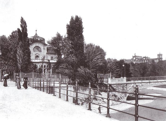 Keywords: Isarlust 01.jpg München Gaststätte Isarlust auf der Praterinsel http //www stadt-muenchen net/bilder/gebaeude/brauerein/isarlust_01 jpg 1900 unbekannt PD-old Old photos of Lehel 1900 in Munich Restaurant Isarlust