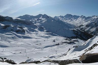 Keywords: Ischgl pists.jpg Panoramic view made of four photos of Ischgl snow tracks from top Own 2009-11-28 Gürkan Sengün Own work all rights released Public domain Pictures by Gürkan Sengün Ischgl Silvretta Arena