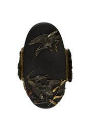 | Keywords: Ishiguro Masatsune - Kashira with Herons and Reeds - Walters 511107.jpg A heron is shown in flight at the top of the composition Below another heron stands in water surrounded by reeds This is part of a set with Walters 51 1106 between 1760 1828 Edo-Meiji shibuichi gold silver cm 3 3 l accession number 51 1107 12707 William T / Henry Walters Collection Baltimore date and mode of acquisition unknown Walters Art Museum Henry Walters Acquired by William T or Henry Walters none place of origin Edo present-day Tokyo Japan Walters Art Museum license Kashira in the Walters Art Museum Ishiguro Masatsune Media contributed by the Walters Art Museum needs category review |