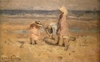 Keywords: Isidore Verheyden 009.JPG en Three girls on the beach oil on canvas 28 5 x 42 cm by the Belgian painter Isidore Verheyden 1846-1905 ; private collection 2012-12-29 17 43 27 own JoJan PD-old-100 Photo made by me at an exhibition in Knokke-Heist Belgium in 2012 cc-by-3 0 Isidore Verheyden Uploaded with UploadWizard