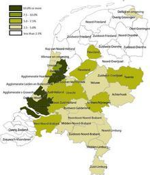 | Keywords: Islam in Netherlands.jpg en Share of Muslims per COROP area 1 January 2004 Data are from Statistics Netherlands http //statline cbs nl/StatWeb/publication/ DM SLNL PA 70794ned D1 3 D2 17-56 D3 0 HDR T STB G1 G2 VW T this Statline table ; note that Statistics Netherlands calculated the number of muslims by adding up all persons by country of 'origin' That method changed in 2006 allowing for a more accurate measuring of actual muslims; see http //www cbs nl/nl-NL/menu/themas/bevolking/publicaties/artikelen/archief/2007/2007-2278-wm htm this CBS webpage Coropgebieden_plain png 2011-01-06 05 02 UTC Coropgebieden_plain png Classical geographer derivative work Giornorosso <span class signature-talk >talk</span> Share of Muslims per COROP area 1 January 2004 Giornorosso Coropgebieden_plain png Cc-zero Original upload log This image is a derivative work of the following images File Coropgebieden_plain png licensed with Cc-zero 2010-07-28T16 31 25Z Classical geographer 1027x1195 213857 Bytes <nowiki>Without border </nowiki> 2010-07-28T16 30 11Z Classical geographer 1102x1300 215966 Bytes <nowiki>B W and with more readable labels </nowiki> 2009-07-09T11 31 36Z Classical geographer 1199x1407 554327 Bytes <nowiki> Maps of the Netherlands Statistical divisions</nowiki> 2009-07-09T11 30 29Z Classical geographer 3588x3529 566115 Bytes <nowiki> en Map of the Dutch NUTS3 regions COROP regions Made using GIS software Own work by uploader Classical geographer 2009-07-09 Permission</nowiki> Uploaded with derivativeFX Maps of provinces of the Netherlands Maps of the Netherlands |