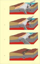 | Keywords: Island arc.svg en A picture describing in 4 steps what happens when two continents collide and creates an island arc between them in the process I created it to show children in swedish school how the petrology of the Swedish westcoast has been created and re-formed when Laurentia collided with Baltica 1 8 billion years ago own Ingwik 2011-03-25 Cc-zero Plate tectonics Volcanological diagrams Block diagrams cartography Island arcs subduction | ||||