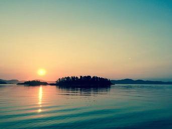 Keywords: island sunset lake water smooth glassy calm tranquil sun reflection waves ripple trees nature summer evening