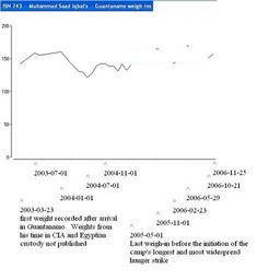 | Keywords: ISN 743 -- Mohammed Saad Iqbal -- Guantanamo weigh-ins.jpg en 24 weights were published for w Guantanamo captive w Qari Mohamed Saad Iqbal Madni between his arrival on 23 March 2003 and 25 November 2006 Own work from data in a table in http //www dod mil/pubs/foi/detainees/measurements/ISN_680-ISN_838 pdf this file Geo Swan 2009-01 Guantanamo captives' weights | ||||