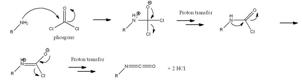 Keywords: Isocyanaat.jpg en Mechanisme formation of isocyanate with use of phosgene own I made it Finkers Isocyanates Organic syntheses Reaction mechanisms Substitution reactions