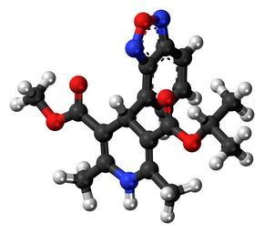 | Keywords: Isradipine-3D-balls.png Ball-and-stick model of the isradipine molecule a calcium channel blocker Colour code 505050 Carbon C black<br> F0F0F0 Hydrogen H white<br> F51E1E Oxygen O red<br> 3C50FA Nitrogen N blue<br> 2011-06-13 own DS Visualizer Jynto talk Space-filling version cc-zero Images by Jynto Ball-and-stick models Isradipine |
