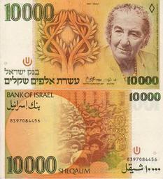 | Keywords: Israel 10000 NIS Bill 1984.jpg en Israel 10 000 old sheqel banknote 1984 It was replaced with a 10 new sheqel banknote with identical design in 1985 Both notes are out of circulation today The note features a portrait of Golda Meir and the crowd of Russian Jews welcoming her as the first Israeli ambassador to the Soviet Union with the inscription shaláħ et ʻamí Let my people go Exodus 9 1 Israël - un billet de banque de 10 000 Sheqalim datant de 1984 qui n'est plus en usage avec un portrait de Golda Meir et une inscription ש ח את עמי Exode 9 1 Laisse aller mon peuple he שטר מישרא ש 10 000 שק ישן משנת 1984 הוח ף בשטר ש 10 שק י חדשי בעיצוב זהה בשנת 1985 שני השטרות אינ במחזור היו ע השטר מופיע דיוקנה ש גו דה ומאיר וקב ת הפני שערכו ה יהודי רוסיה כשהגיעה ברית המועצות כשגרירת ישרא הראשונה ע הכתובת שַ ּח את עמי שמות ט' א' ورقة نقدية إسرائيلية من فئة 10000 شيقل قديم تحمل صورة جولدا مائير تم استبدال هذه الورقة بورقة نقدية من فئة 10 شواقل جديدة ذات تصميم متجانس في 1985، وقد خرجت كلتا الورقتين من حيز التداول يحمل ظهر الورقة النقدية صورة احتشاد يهود روسيا لاستقبال جولدا مائير عند وصولها إلى الاتحاد السوفياتي كسفيرة إسرائيل الأولى لديه، مع اقتباس بالعبرية من سفر الخروج أصحاح 9، 1 شالاح إت عامي أطلق شعبي own scan User To14go 2009-01-23 Money-IL <gallery> Golda Meir Moscow 1948 jpg The photograph used on the reverse </gallery> Old Israeli shekel banknotes Persons on banknotes 1984 in Israel Banknotes with a face value of 10000 |